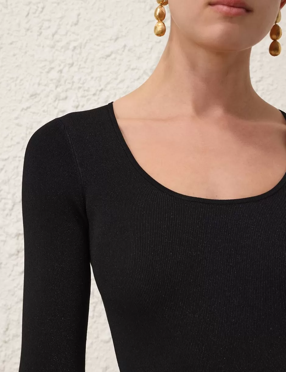 The Illustration Knit Bodysuit in Black from our Fall 2024 Collection, In Illustration. A bodysuit featuring a scoop neck and back with long sleeves.