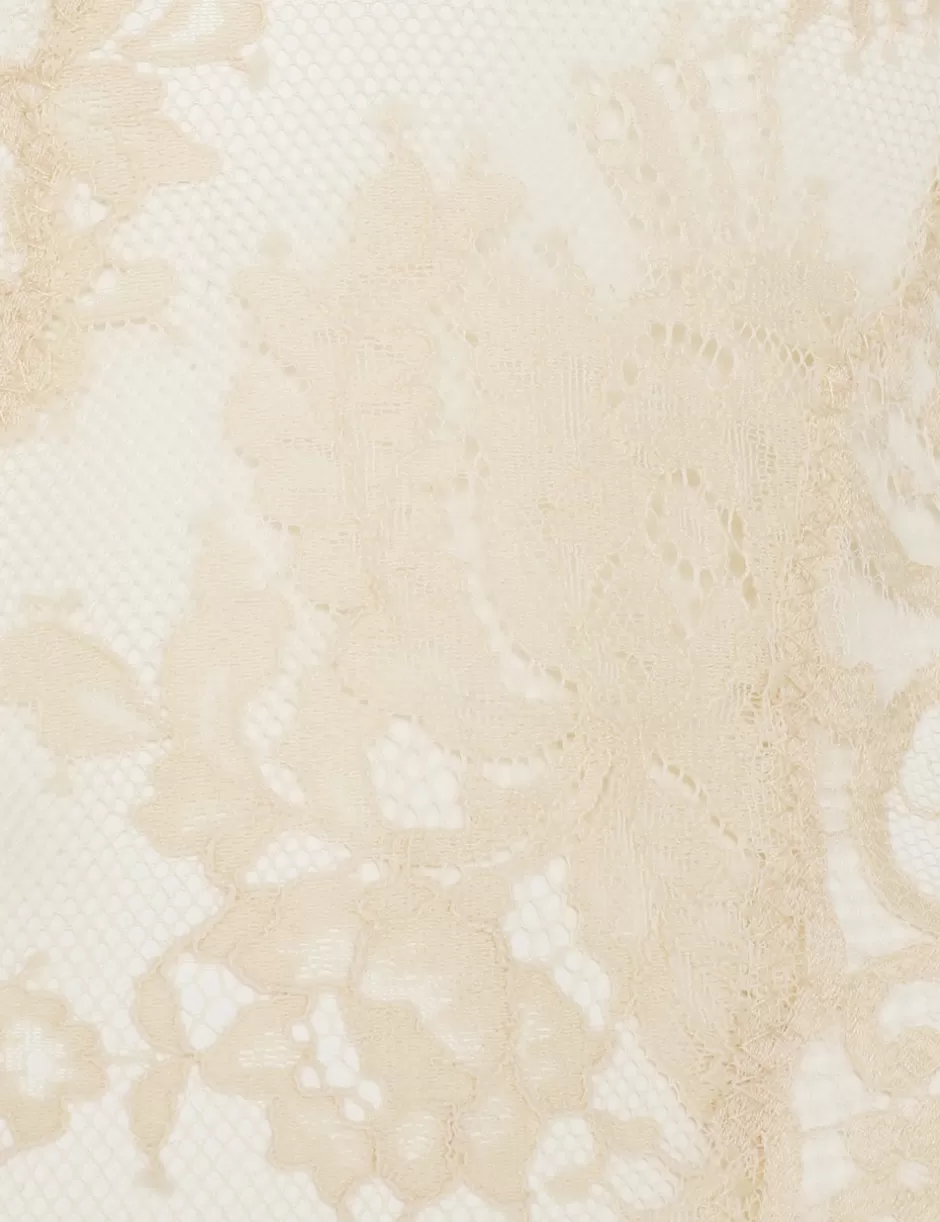 The Illustration Lace Teddy in Cream from our Fall 2024 Collection, In Illustration. A lace bodysuit featuring an invisible centre back zip closure and adjustable straps.