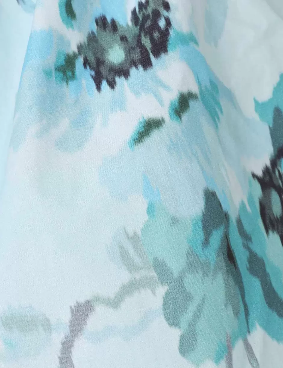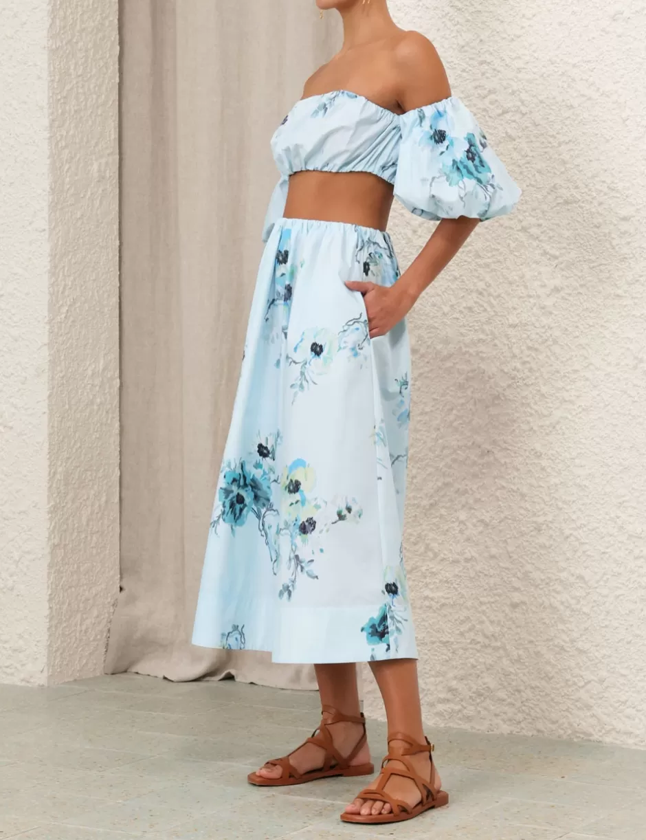 The Lightburst Puff Sleeve Top in Aqua Floral from our Summer Swim 2024 Collection. A cotton top featuring off shoulder puff sleeves with elasticated cuffs and heavy gathering throughout.