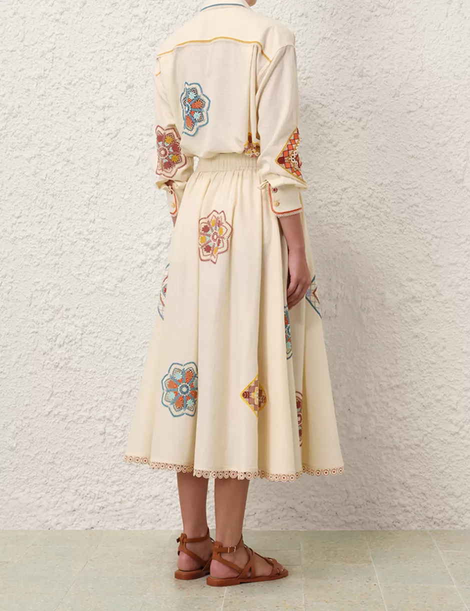 The Ottie Doily Shirt in Cream Multi from our Summer Swim 2024 Collection. A cotton long sleeve shirt featuring a doily edge trim.