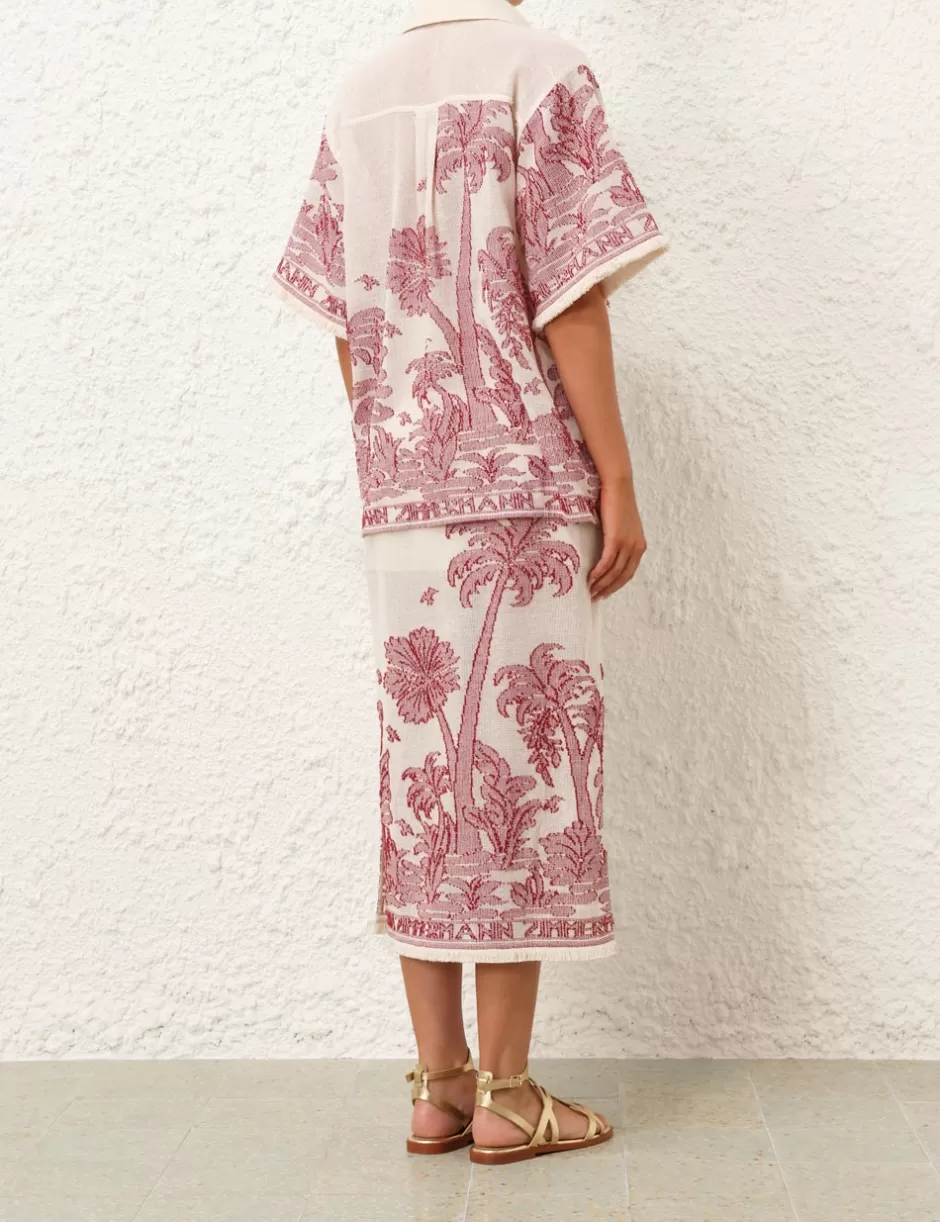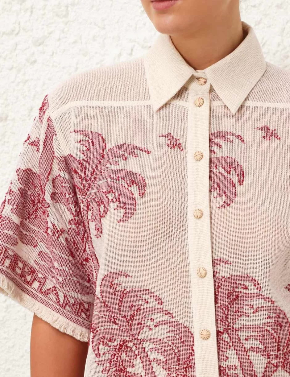The Ottie Palm Relaxed Shirt in Cream/Red from our Summer Swim 2024 Collection. A cotton shirt featuring a palm print an…
