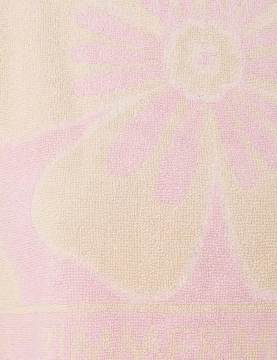 The Pop Long Sleeve Towelling Crop in Pink/Cream from our Summer Swim 2024 Collection. A terry cotton crop featuring fringed edges and ZIMMERMANN branding.