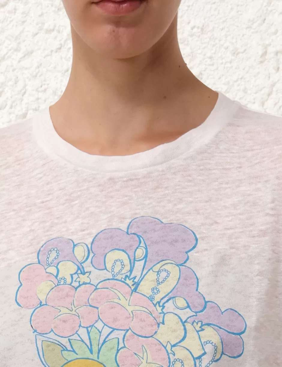 The Printed Straight Tee in Ivory from our Summer Swim 2024 Collection. A cotton tee featuring a ZIMMERMANN print.
