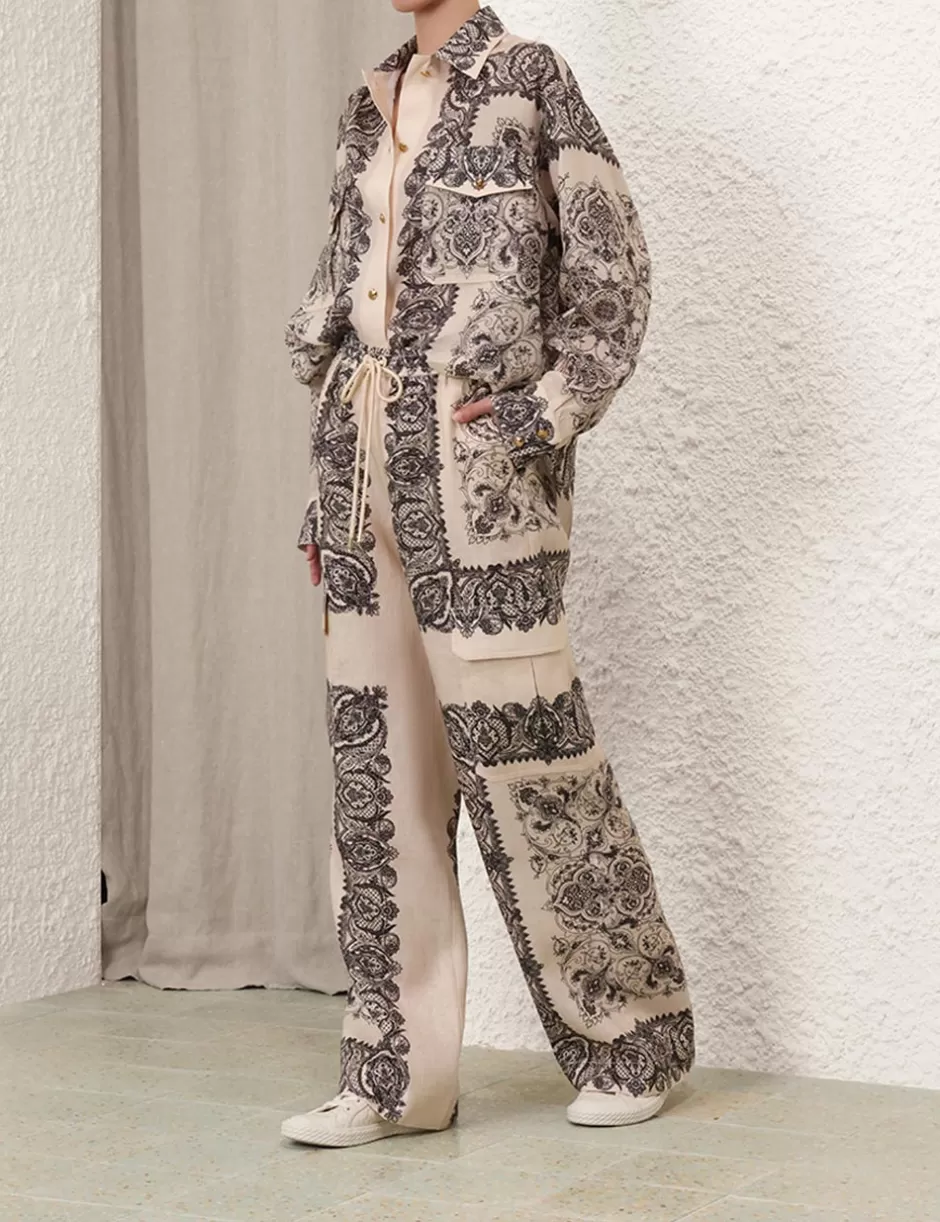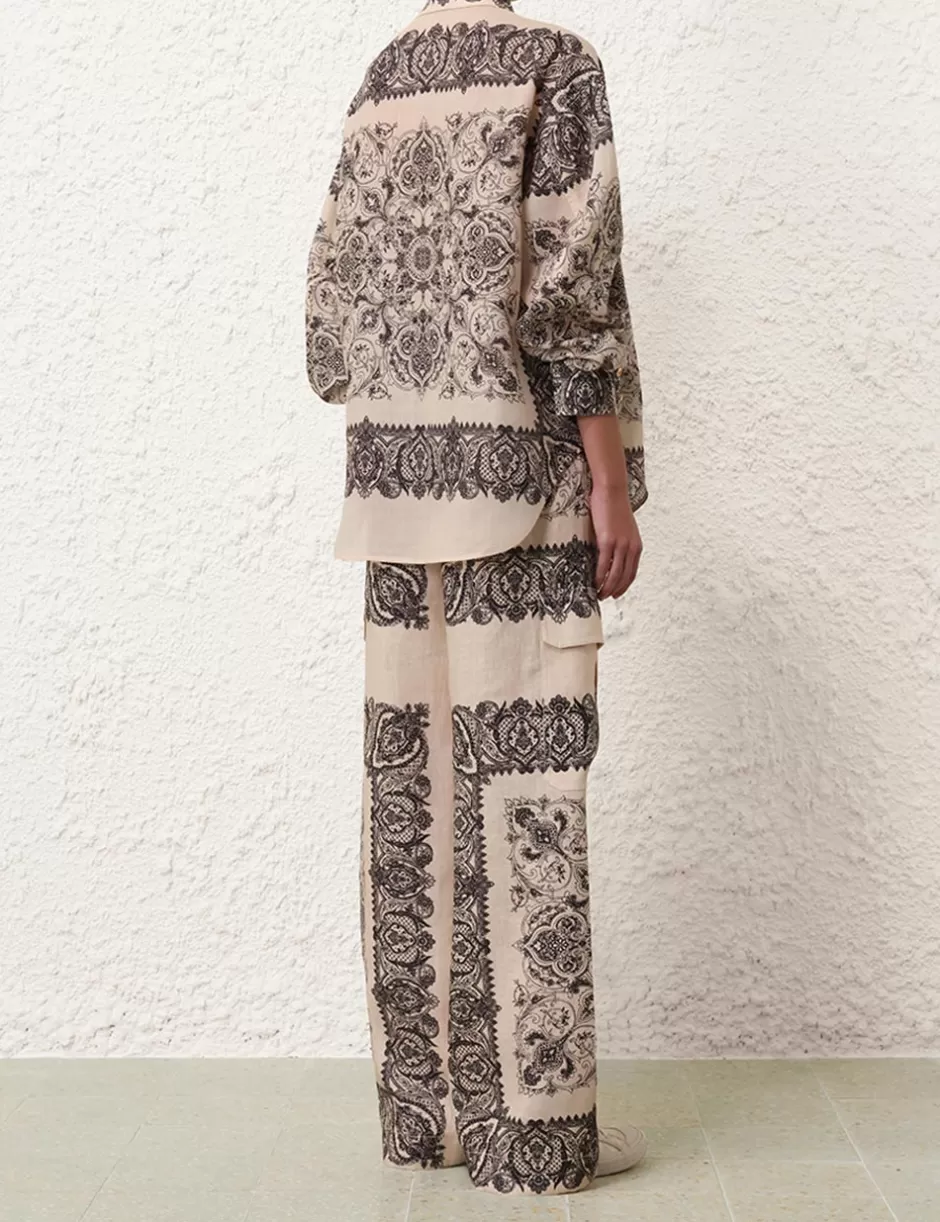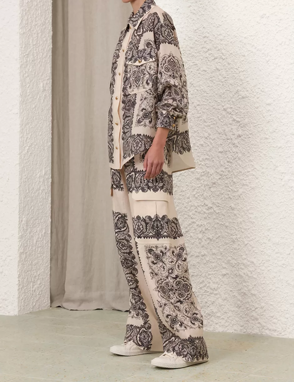 The Utility Pocket Shirt in Tea Paisley from our Fall 2024 Collection, In Illustration. A long sleeve blouse featuring a utility silhouette, chest pockets and a classic collar; finished with buttoned cuff sleeves.