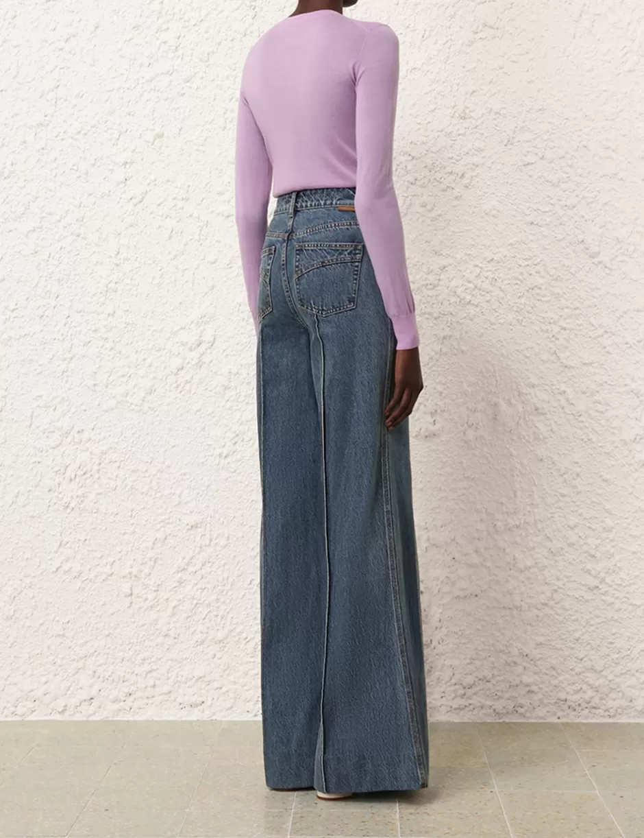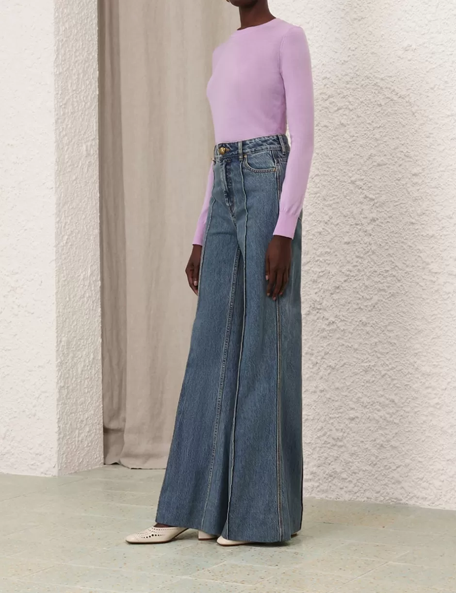 The Classic Crew Neck Sweater in Lilac from our Fall 2024 Collection, In Illustration. A cashmere sweater featuring a ribbed details throughout.