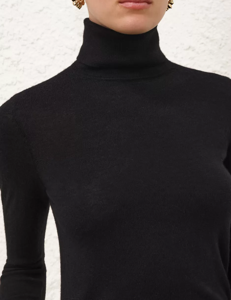 The Classic Turtle Neck Sweater in Black from our Fall 2024 Collection, In Illustration. A cashmere sweater featuring a thick roll neck and ribbed edges throughout.