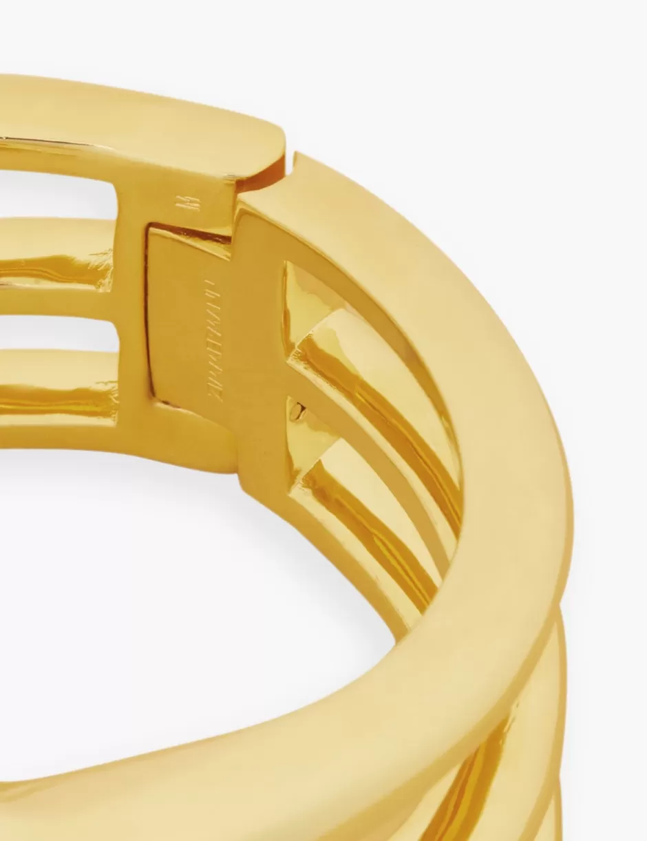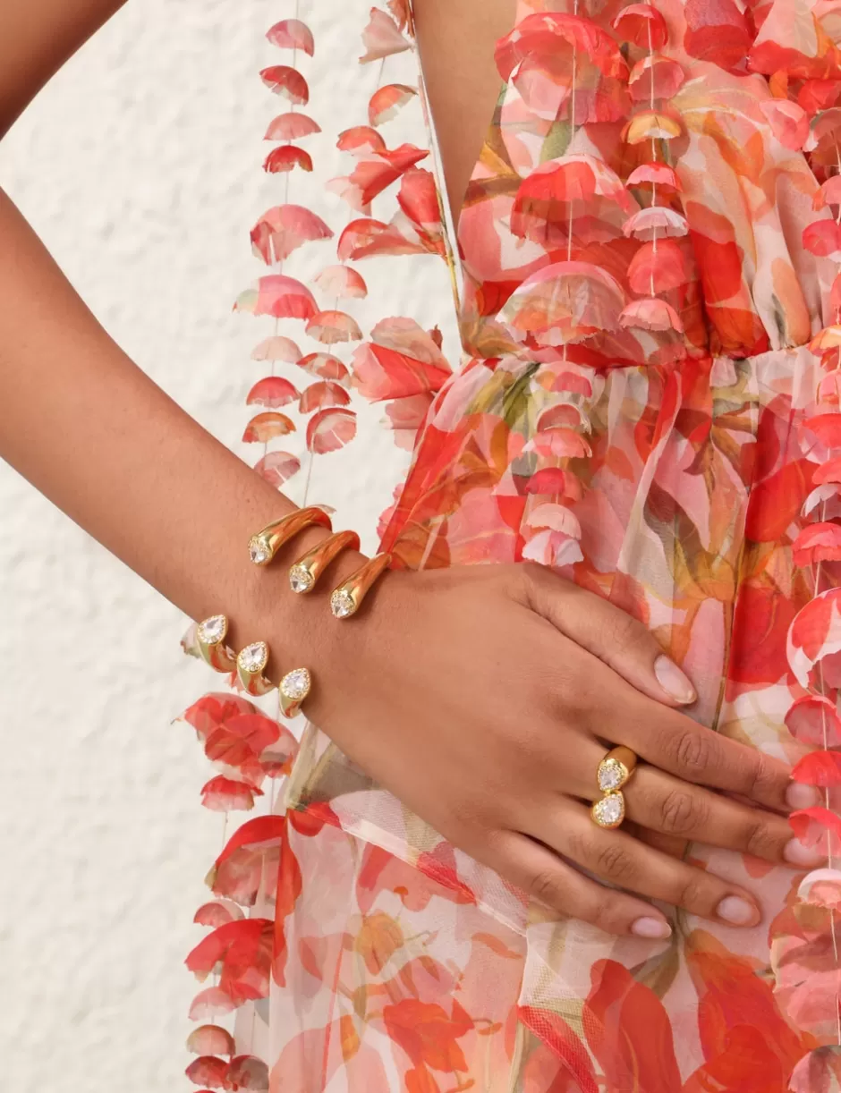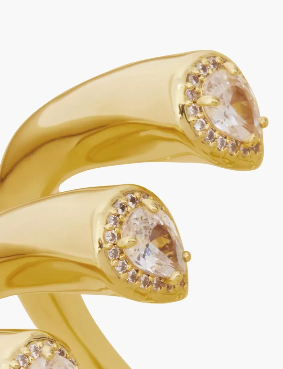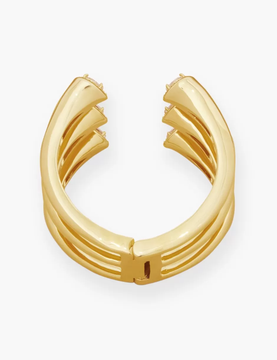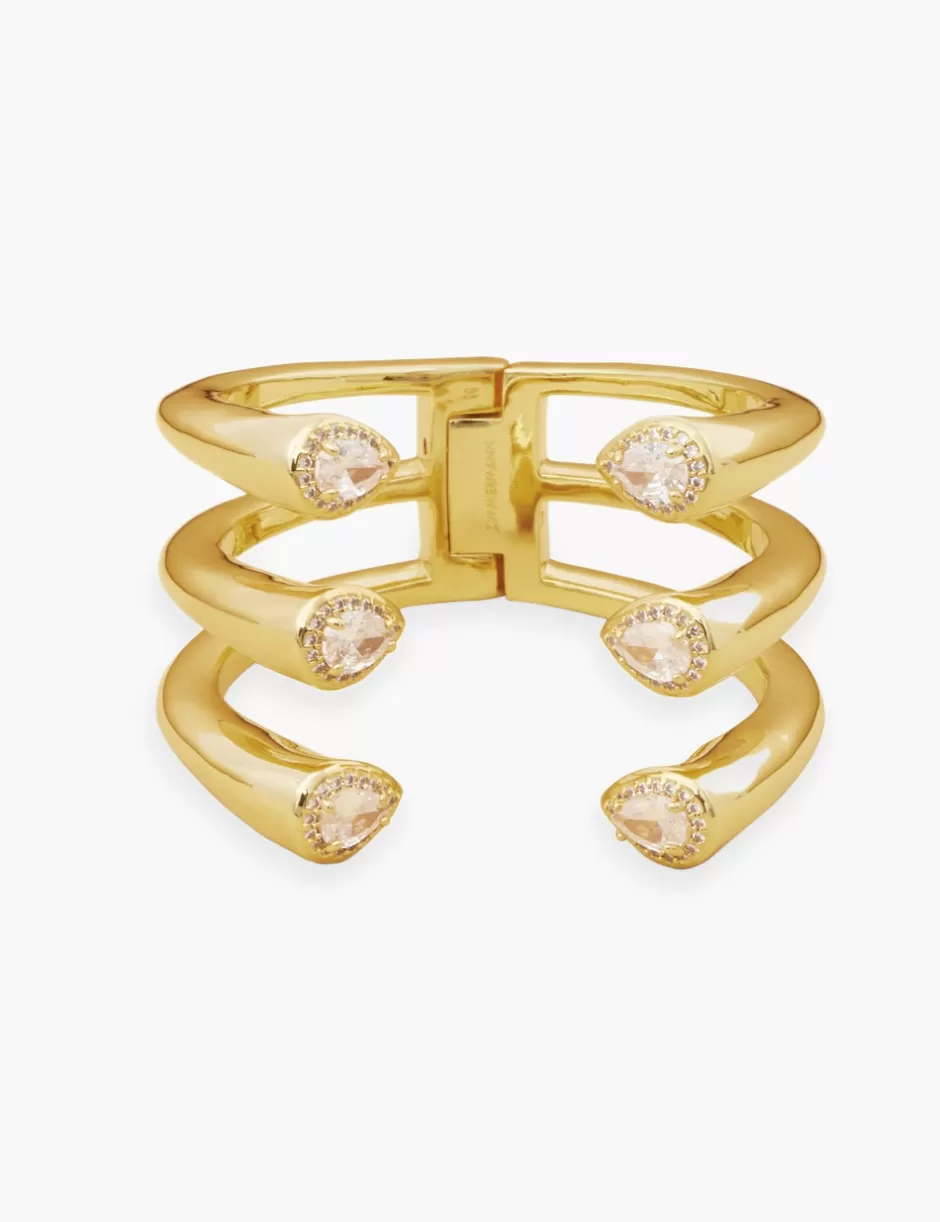 The Zimmermann Radiant Cuff in Gold from our Spring 2024 Collection, Natura. A gold plated wrist cuff featuring cubic zirconia stones.