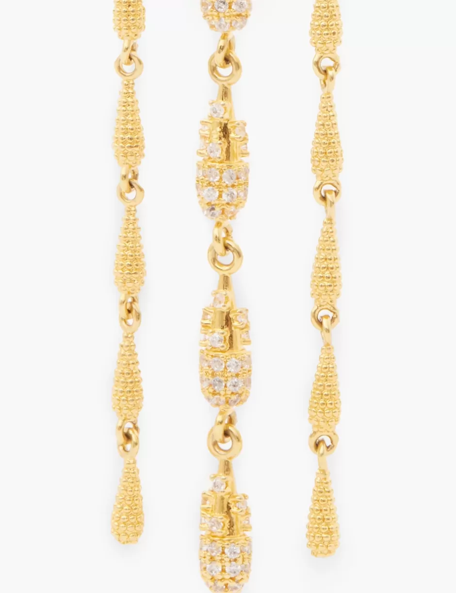 The Zimmermann Midnight Earrings in Gold from our Spring 2024 Collection, Natura. A gold plated drop earring featuring cubic zirconia stones throughout.