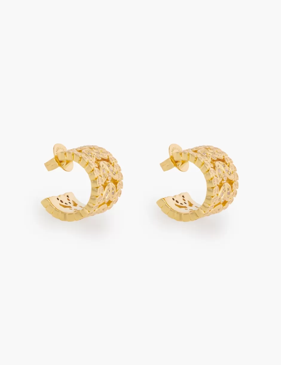The Zimmermann Laurel Hoops in Gold from our Spring 2024 Collection, Natura. A gold plated hoop earring featuring white cubic zirconia stones throughout.