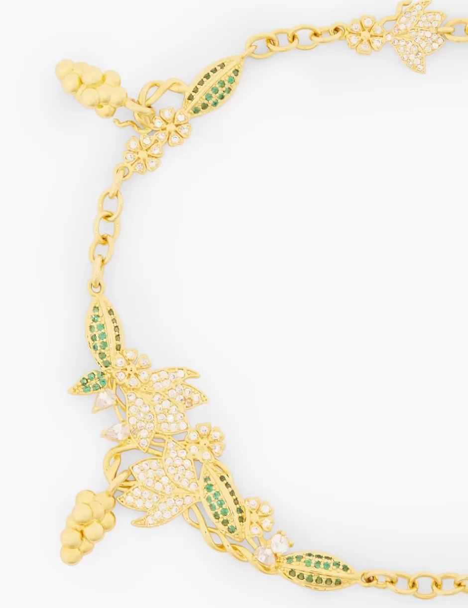 The Zimmermann Bloom Necklace in Gold/Green from our Spring 2024 Collection, Natura. A gold plated chain necklace featuring cubic zirconia stones throughout.
