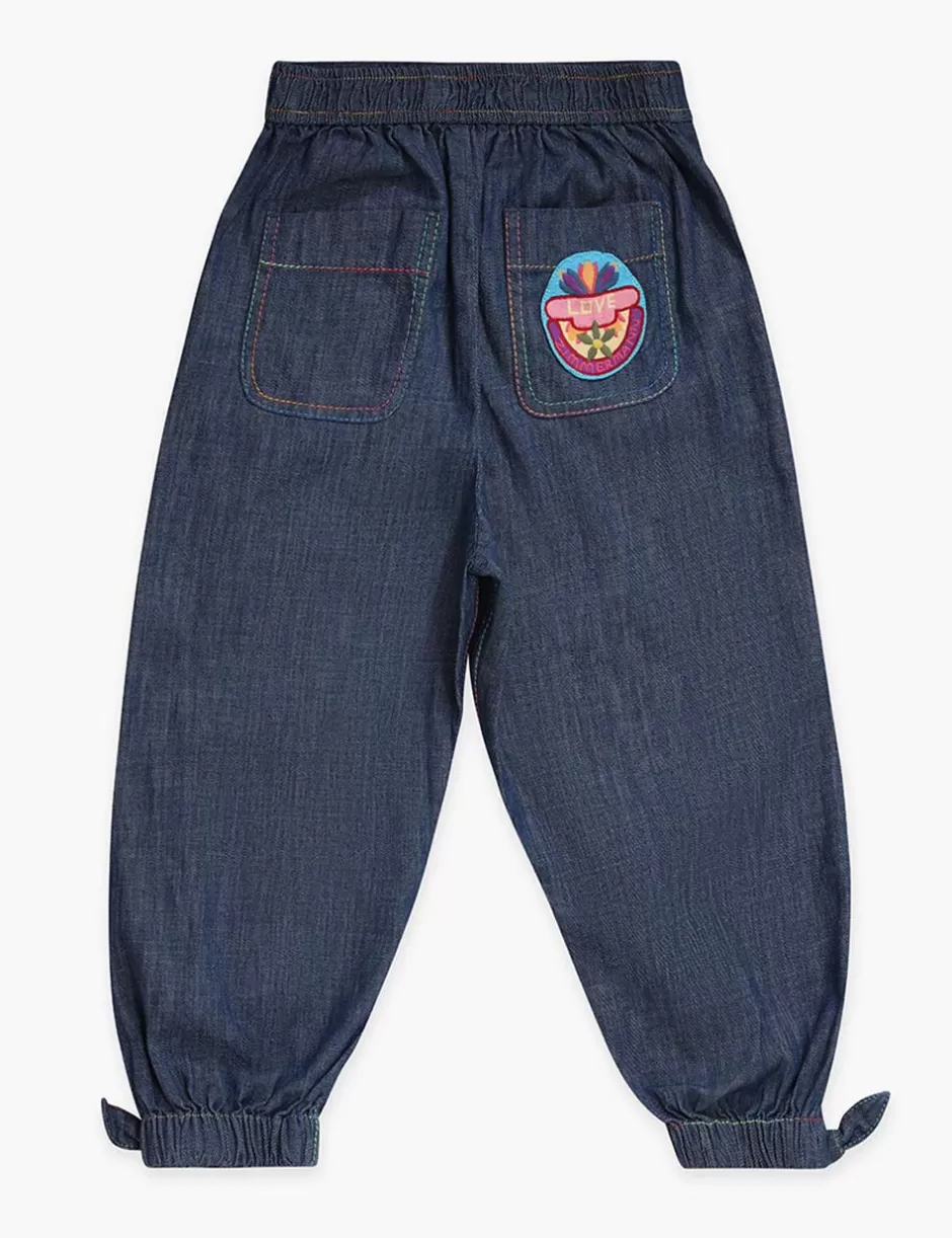 The Ottie Denim Pant in Blue Lagoon from our Summer Swim 2024 Collection. A kids denim pant featuring an elasticated waistband and cuffs.