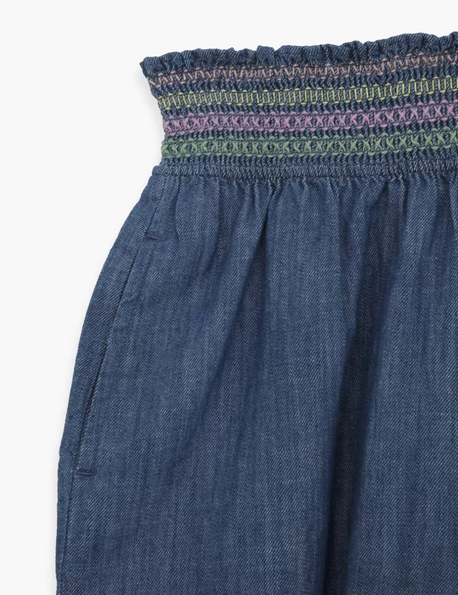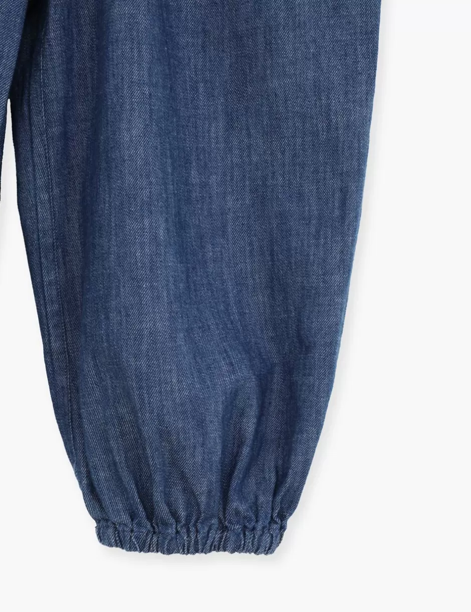 The Tallow Kids Denim Pant in Blue Lagoon from our Resort Swim 2025 Kids Collection. A denim pant featuring an elasticated waistband and cuffs.