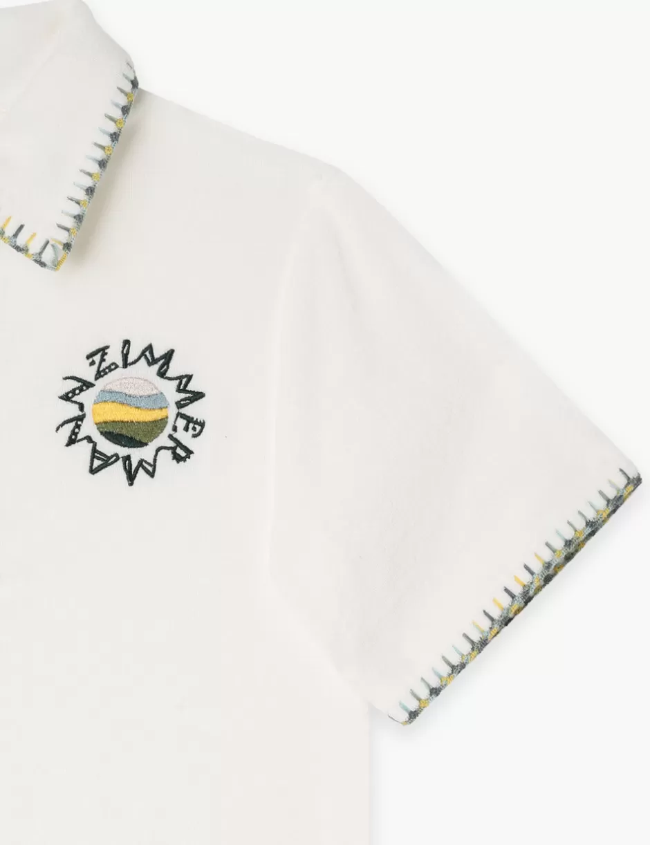 The Tallow Kids Terry Dress in Ivory from our Resort Swim 2025 Kids Collection. A terry towelling dress featuring a classic collar and buttons down the front opening.