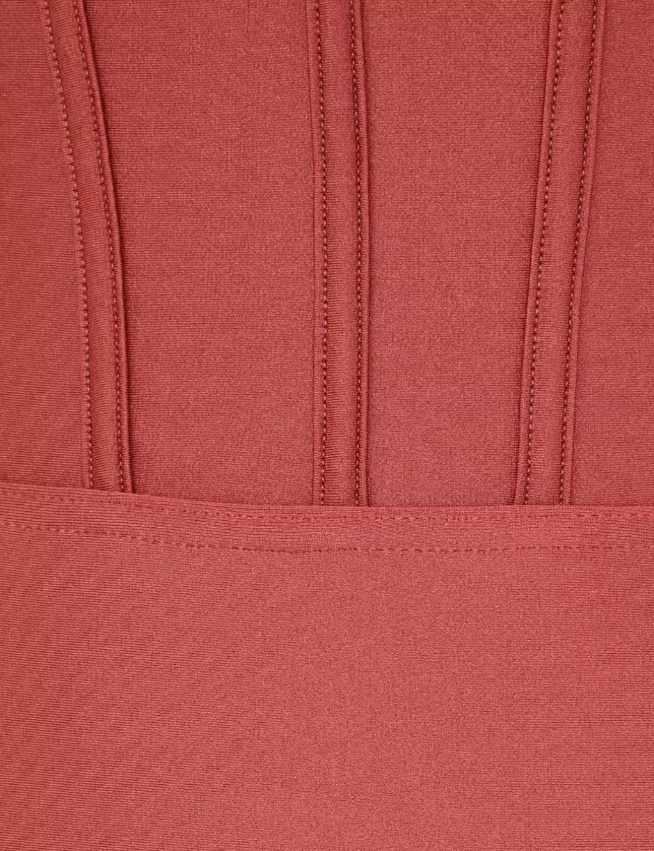The Acacia Corset 1PC in Musk from our Resort Swim 2025 Collection. A shiny lycra one piece featuring a corset waist and an open back with centre back clip closure.