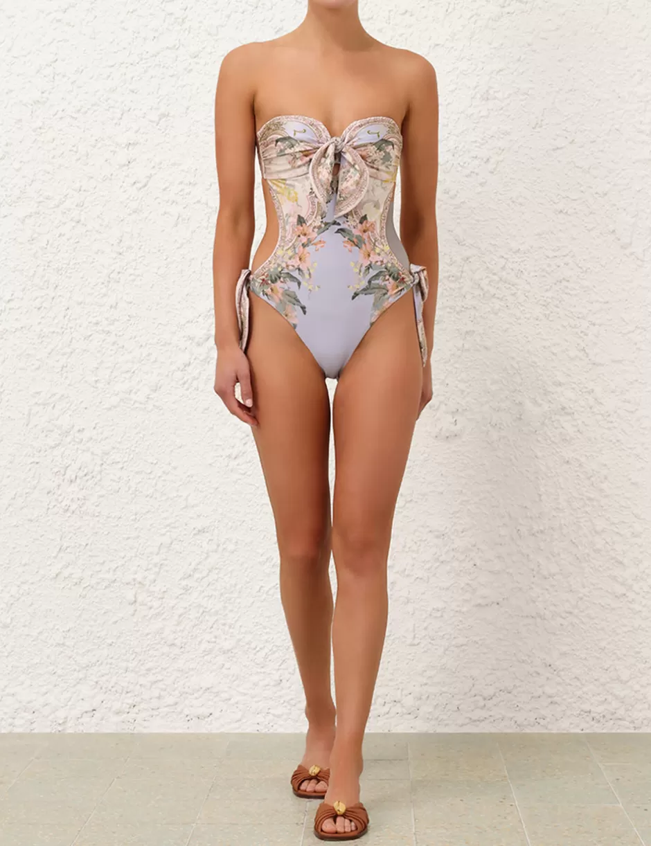 The Wylie Scarf Tie 1PC in Blue Floral from our Resort Swim 2025 Collection. A lycra one piece featuring bow details on front and side with an open back.