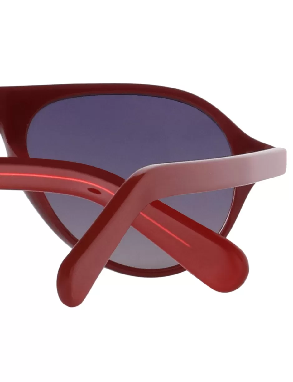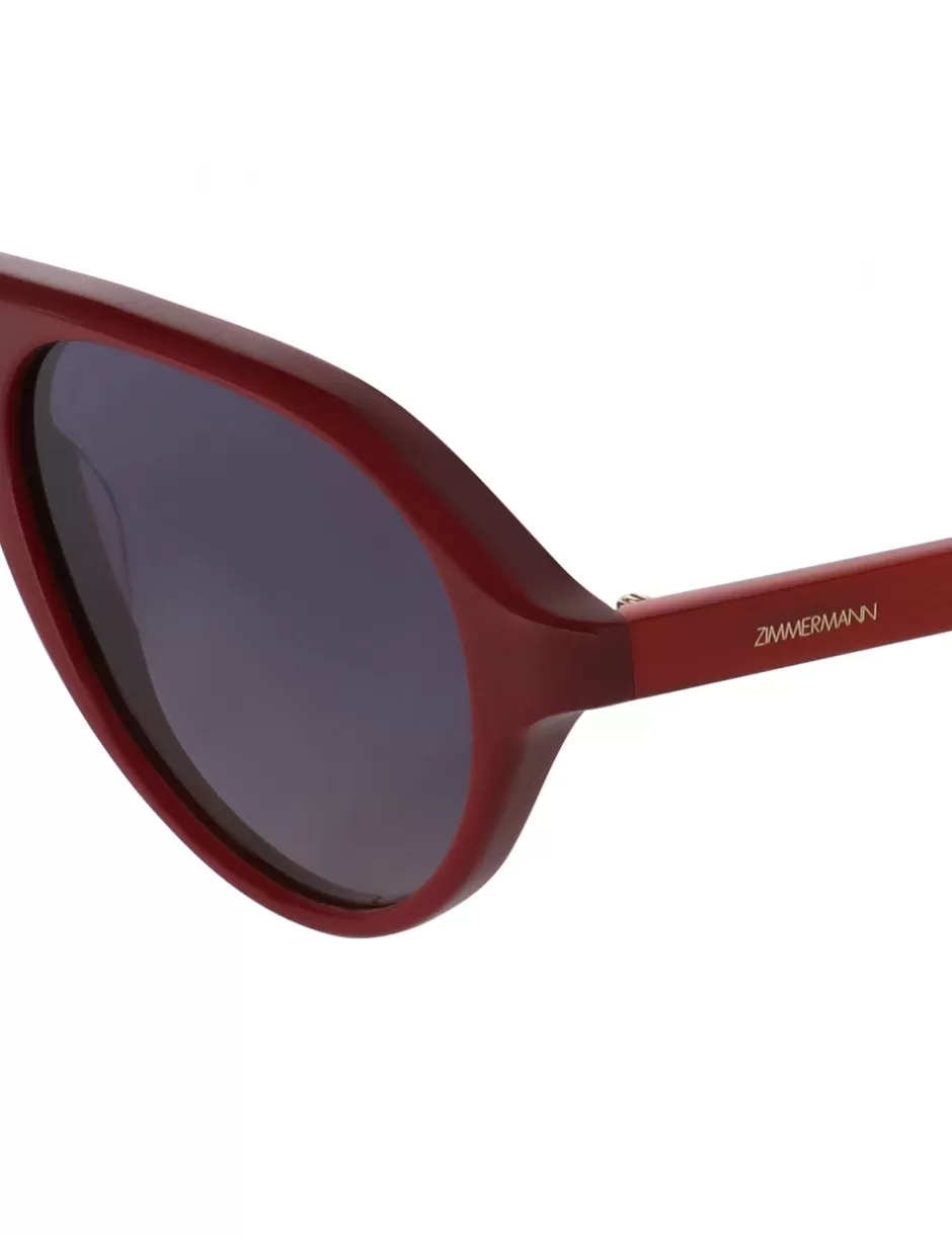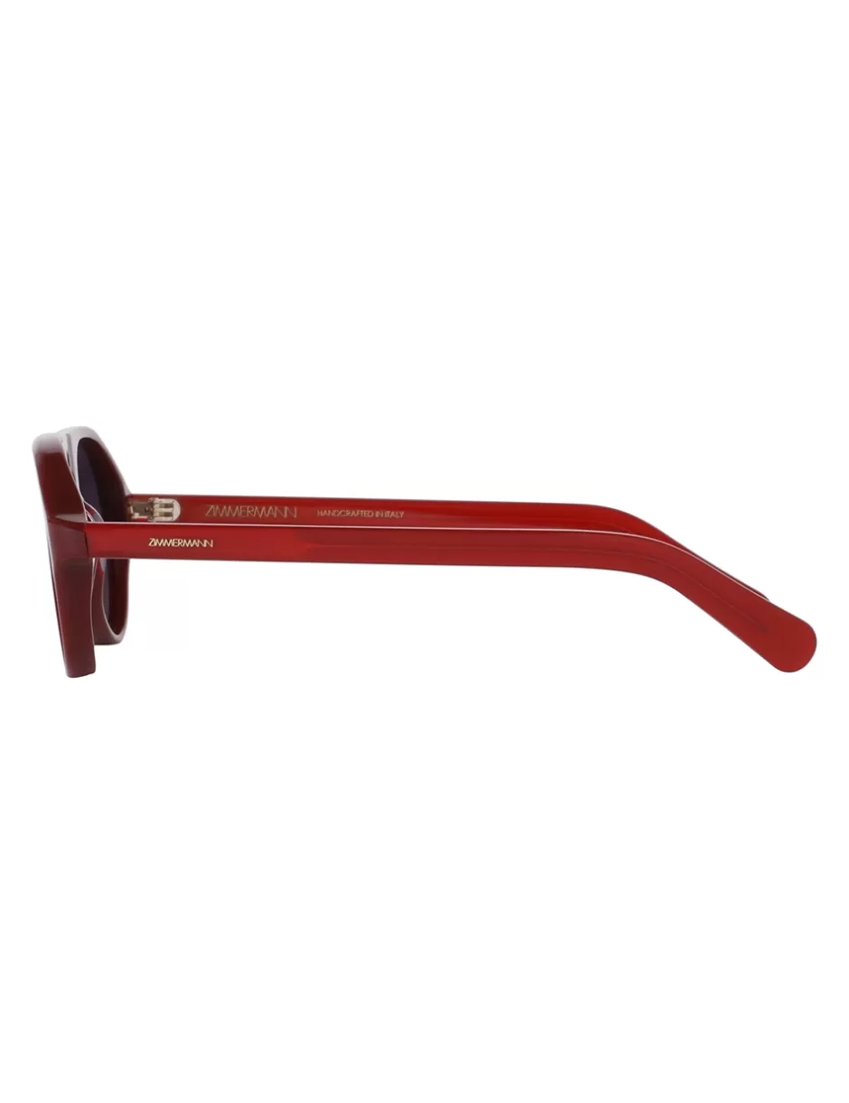 The Zimmermann Cyd Aviator in Burgundy from our Spring 2024 Collection, Natura. An oversized aviator shape sunglasses featuring a custom wire core suspended in a layered acetate with transparent surface.