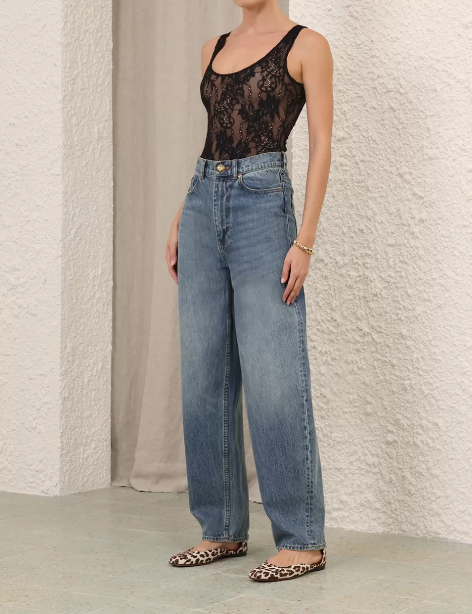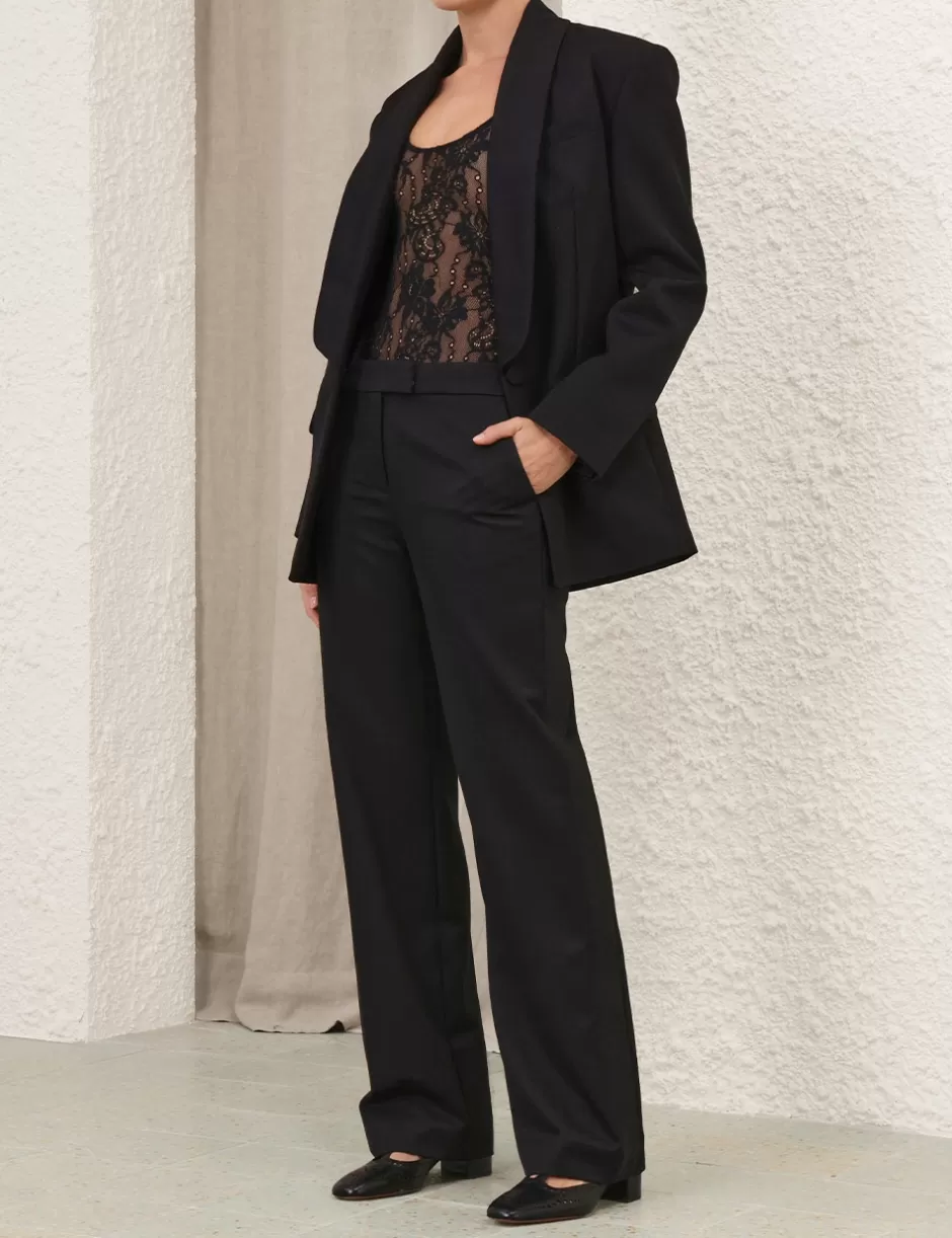 The Lace Scoop Bodysuit in Black from our Fall 2024 Collection, In Illustration. A lace bodysuit featuring a scoop neck and back.